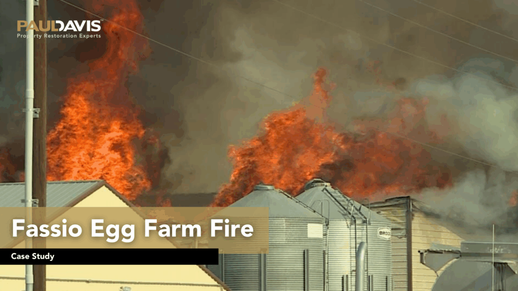 A fire at the Fassio Egg Farm resulted in damage to key operational areas of the facility, disrupting daily production and requiring specialized cleanup and restoration. Crews addressed fire and smoke damage, removed affected materials, and began repairs to restore safe working conditions and minimize long-term impact on the farm’s operations.